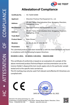 Productos principales:Sistema automático de cubierta de piscina, Clorador de agua salada, ducha solar, panel de calefacción de piscina solar, limpiador automático de piscina